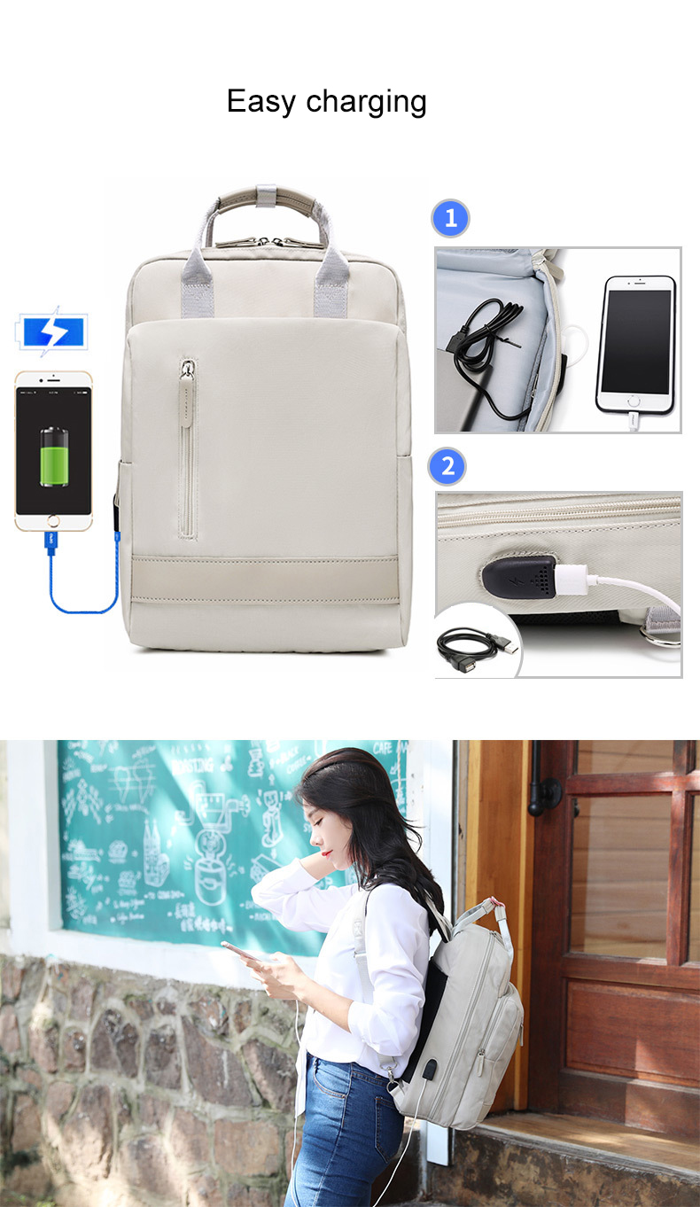 Mochila de viagem feminina com carregamento USB Mochila de mão à prova d'água para laptop de 14 15,6 polegadas Bolsa de viagem empresarial
