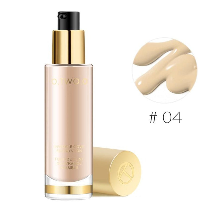 (4) A Base Facial Líquida O.TWO.O Alta Cobertura é livre de óleo, dando-lhe uma experiência confortável e refinada.