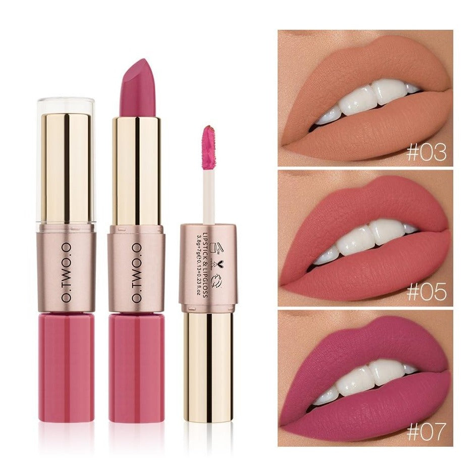 1. O Batom Matte e Batom Líquido O.TWO.O 2 em 1 é um batom com lipgloss, fácil de transportar.